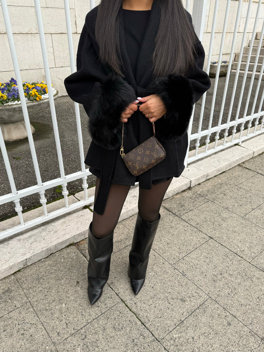 50% OFFBLACK WOOL COAT WITH FUR